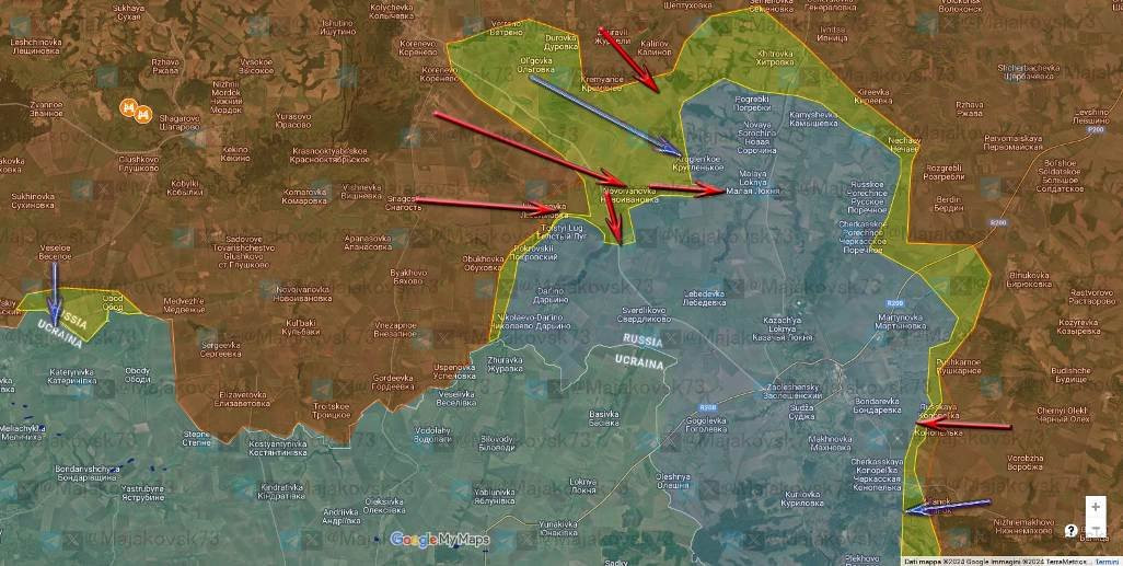 Также на восточном участке Курского фронта ВС РФ отвоевали немного территории в районе Русской Конопельки и, южнее, оказывают давление в районе Уланка.