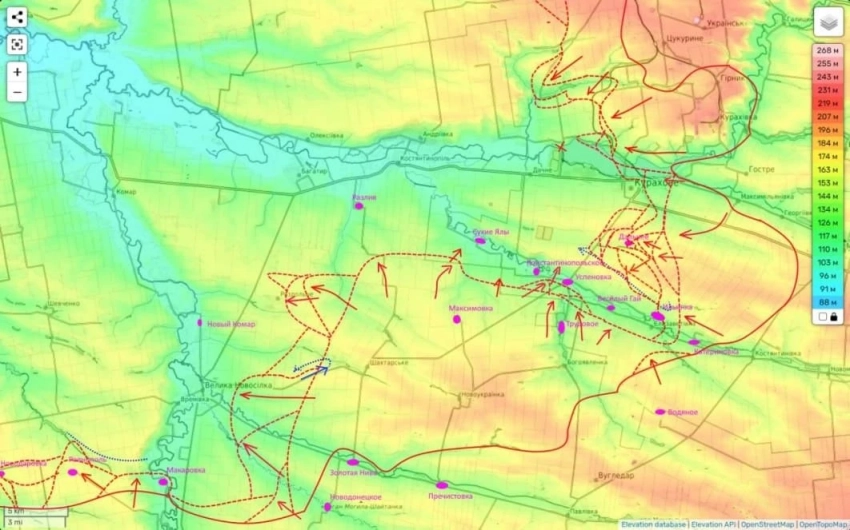 В свою очередь обстановка в Курахово остаётся напряжённой. Бои идут за высоты, и потеря контроля над ними приведёт к потере города. В районе Волчьей реки российские войска продолжают наступление, продвигаясь на несколько километров к важному опорному пункту. Западней Селидово идут бои за село Пустынка, который почти перешёл под контроль российских войск.