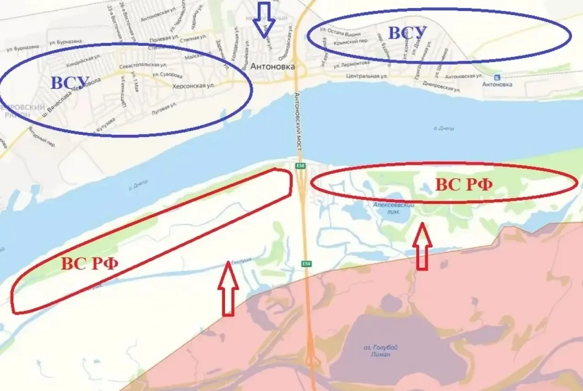 ВС РФ прорвали оборону ВСУ на островах в нижнем течении реки Днепр и закрепились на дачах у Антоновского моста под Херсоном