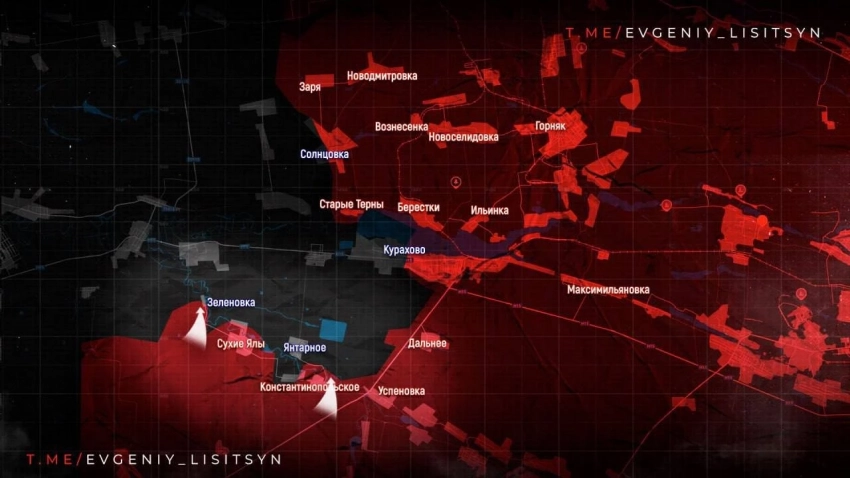 В Курахово продолжаются боестолкновения, юго-западнее ВС России наступают на Константинополь: юго-западнее расширяется зона контроля у н.п. Зеленовка. Из освобожденных сёл наши воины эвакуируют мирное население. В центральной части города продолжаются боестолкновения за оставшиеся многоэтажные дома, сообщает Telegram-канал "Два майора".