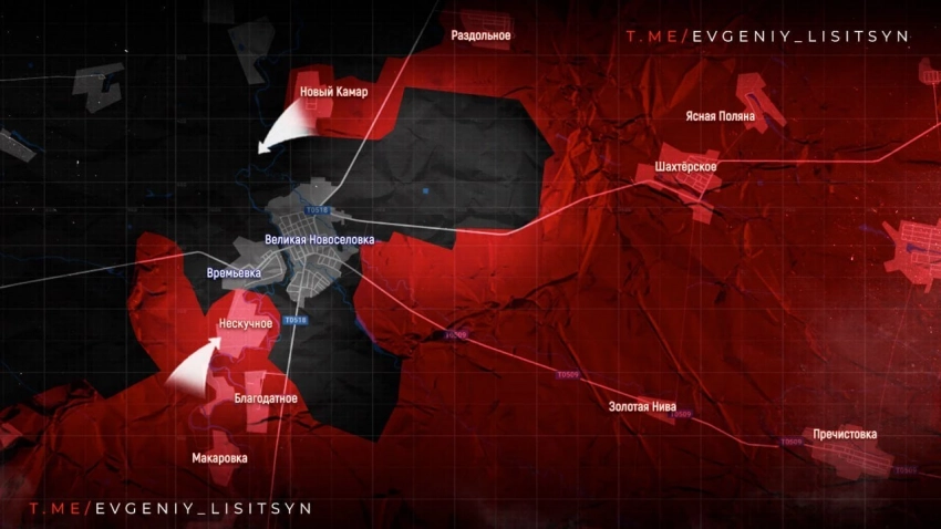 На Великоновосёлковском направлении российские войска расширили контроль территории южнее автодороги Гуляйполе-Великая Новосёлка на участке шириной до 1.8 км.