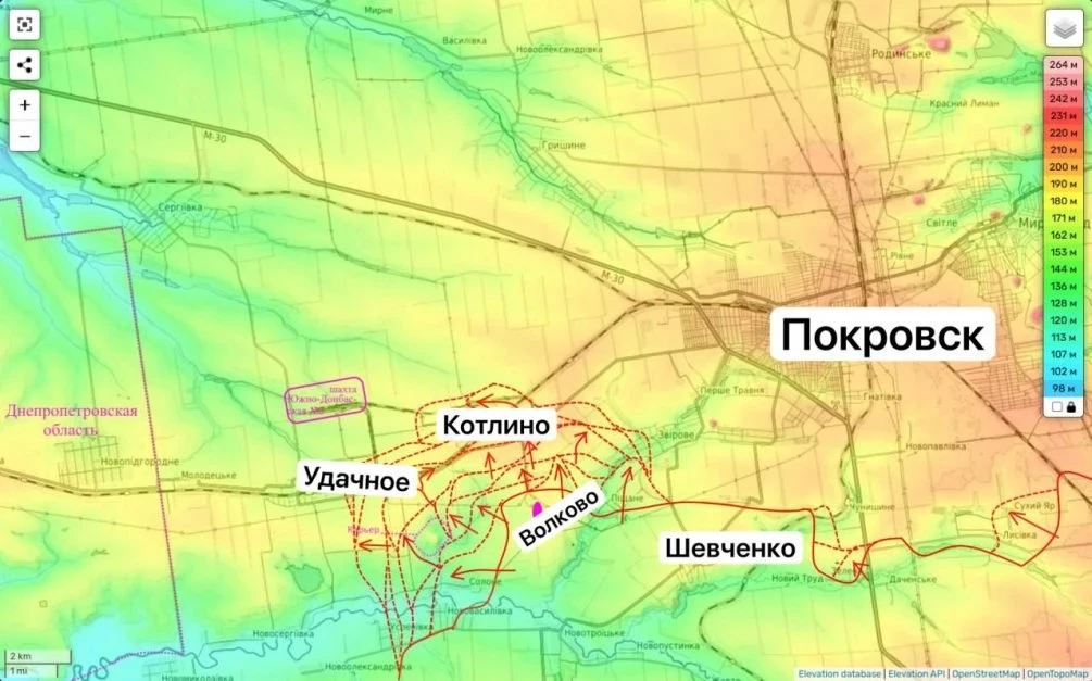 Это объясняется тем, что отсюда российской армии рукой подать до границы с Днепропетровской областью. Именно это, фактически политическое, обстоятельство движет киевским режимом, а не желание удержать Покровск (как мы помним, они уже давно вывезли из города все административные и иные учреждения).