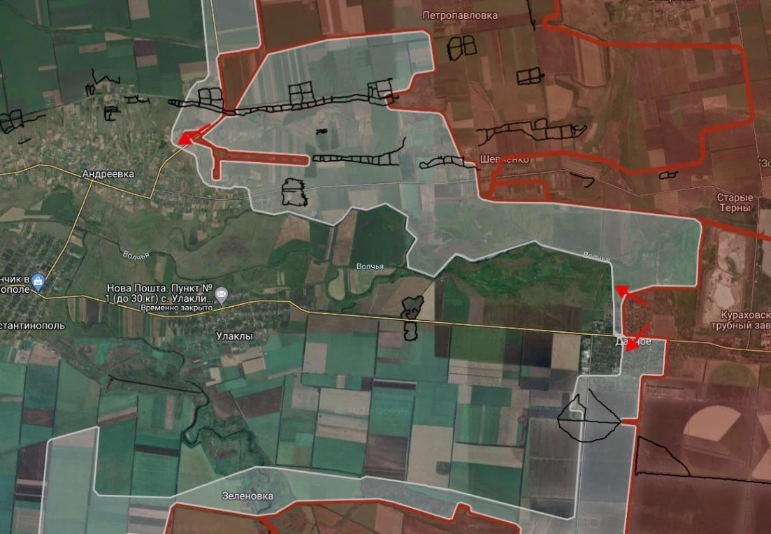 Как отмечает "ВХ", зона контроля ВС РФ со стороны населенных пунктов Двуречная и Новомлынск расширяется на запад.