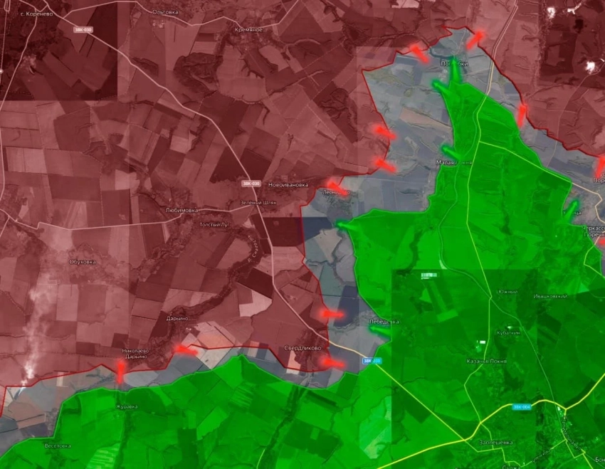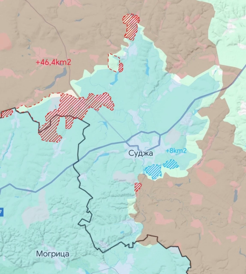 На приграничной территории от Николаево-Дарьино, Дарьино и западнее Свердликово наши выбили ВСУ еще из нескольких опорных пунктов, существенно продвинулись. На этом участке ВС РФ освободил почти 15 кв.км, это признал украинский военный паблик Deep State. Таким образом, срезан весь приграничный выступ украинского плацдарма.