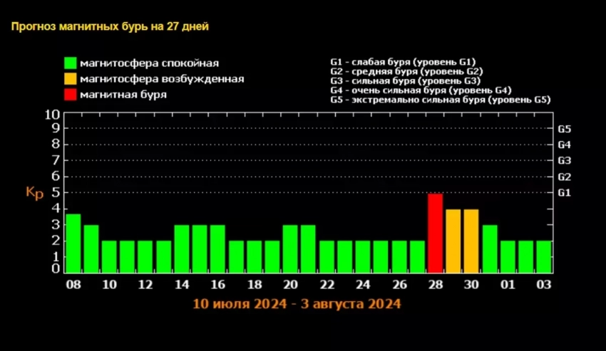 Магнитная буря 9 июля 2024 года: будет ли сильный геошторм, свежая характеристика сегодняшнего дня