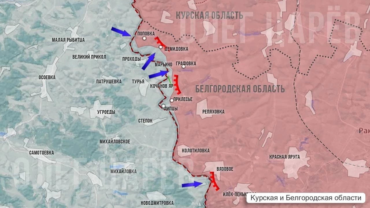 Карта боевых действий в Белгородской области на 26 марта 2025 года