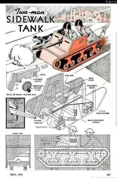 А вот очень интересный танк для игры на улице. Журнал «Популярная механика», май 1943 г.