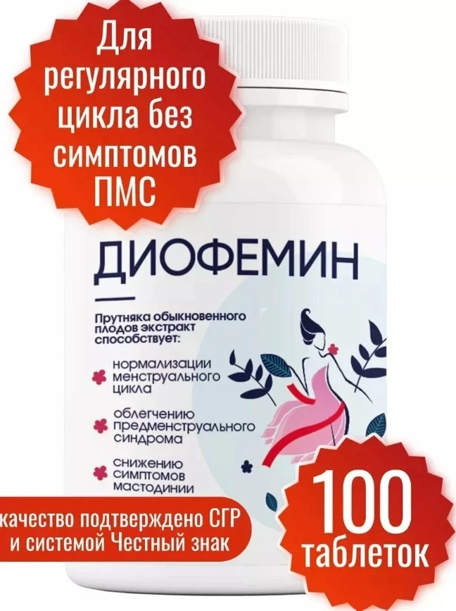 Диофемин 100 таблеток Миофарм при климаксе / при менопаузе / для снижения симптомов климакса и менопаузы. Экстракт сухой витекса священного, фолиевая кислота