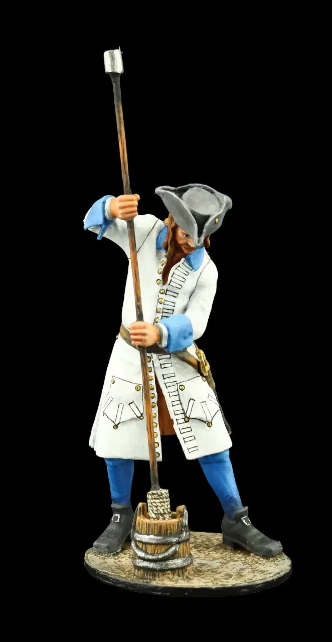 Интересно, что шведские артиллеристы начала XVIII в. также носили форму из самого дешевого некрашеного сукна, хотя обычно канониров старались одевать в мундиры красного, «огненного цвета». Производители: «Silver Dream Studio» и «Chronos-miniatures»
