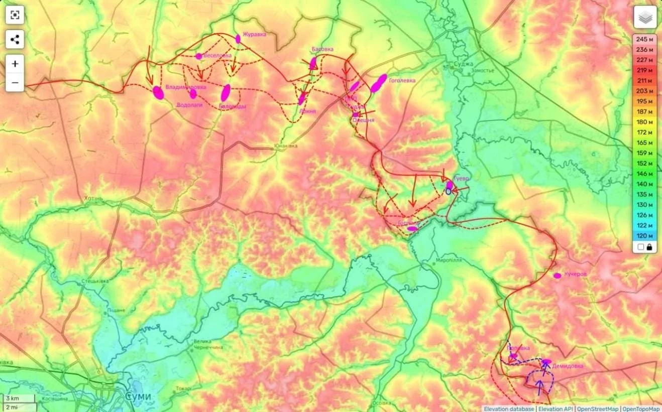 Из Сумской обл ВСУ предприняли несколько новых атак на границу в районе Тёткино и Нового Пути. ВС РФ практически освободили Локню и выходят к окраинам Юнаковки. Продолжаются бои в Водолагах и Беловодах.