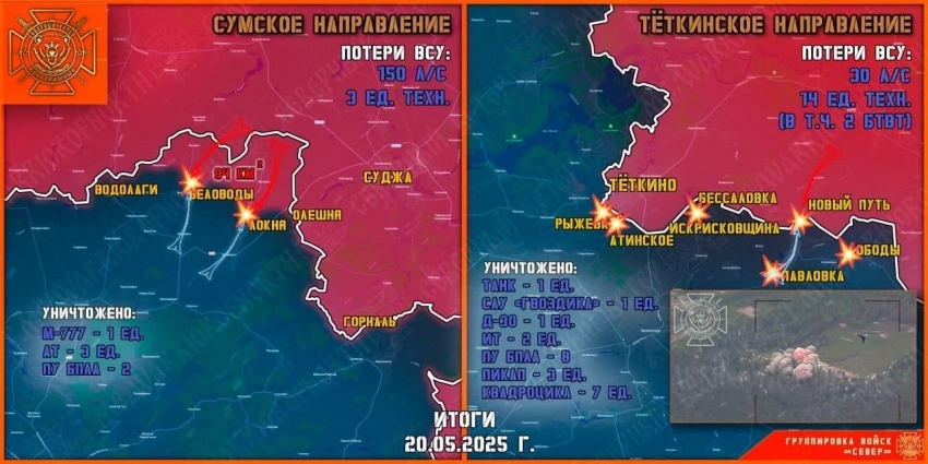 Главные новости » Эксклюзив » ВСУ осуществили попытку прорыва в Тёткино в Курской области: карта боевых действий по состоянию на 22.05.2025