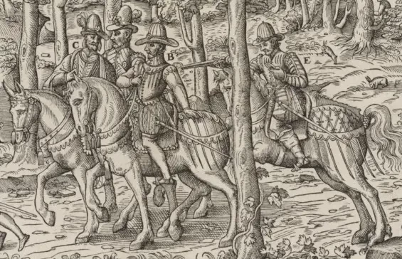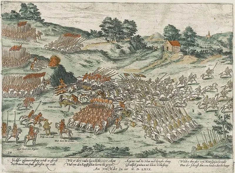 Битва при Жарнаке на французской гравюре XVI века
