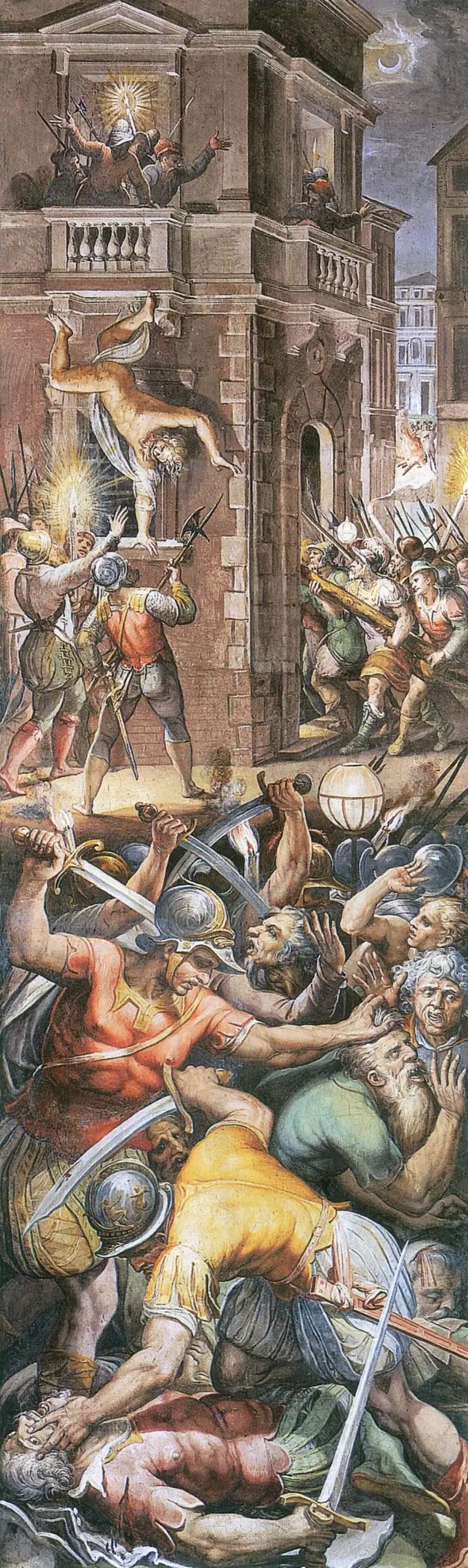 Убийство Колиньи на фреске Вазари, посвященной событиям Варфоломеевской ночи, была написана по заказу папы римского Григория XIII