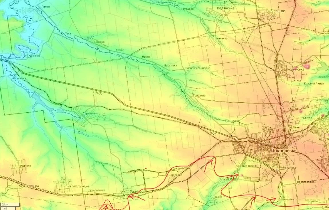 На Покровском направлении, западнее города Покровска, бойцы Вооружённых сил Российской Федерации сосредоточили усилия на боях за стратегически важный населённый пункт Удачное. За минувшие двое суток части группировки «Центр» продвинулись с юга, обходя Удачное с запада и отрезая его от логистических путей из Молодецкого.