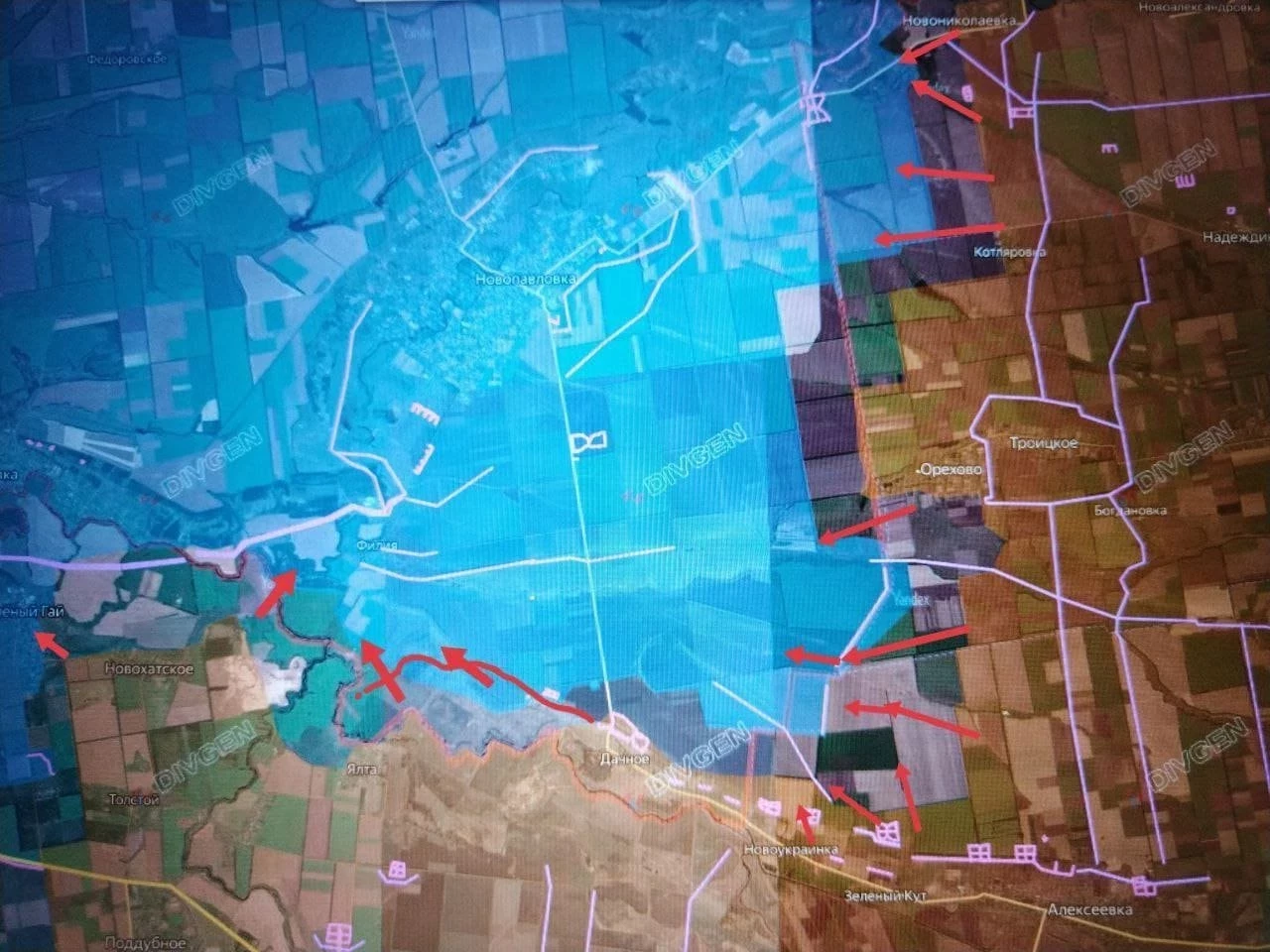 На Покровском направлении армия России обходит покровско-мирноградскую агломерации с севера, стремясь перерезать оставшиеся линии снабжения ВСУ. Ожесточённые бои идут в северной и южной частях Новоэкономического, прикрывающего восточные подступы к Мирнограду. МО подтвердило освобождение Новоторецкого, а российские войска уже продвигаются западнее, к Никаноровке. Севернее, из Маяка, наши наступают на Новое Шахово, что в 10 км от Доброполья - ещё одного важного узла обороны ВСУ. Южнее Новоторецкого, из района Фёдровки, ВС РФ атакуют на Суворово и Сухецкое, чтобы блокировать Родинское с севера и прервать снабжение ВСУ в Покровске из Доброполья. А как только нашими будет взят рубеж Никаноровка-Белицкое, у ВСУ станется только трасса из Петропавловки и рокадная дорога из Доброполья через Гришино. Но и там, с учетом продвижения армии России от Удачного к Молодецкому, снабжать свою группировку в Покровске станет куда сложнее. Уже третий день украинские источники обсуждают российские ДРГ, зашедшие на юго-западные окраины Покровска, сообщает Олег Царёв в своём Telegram-канале.