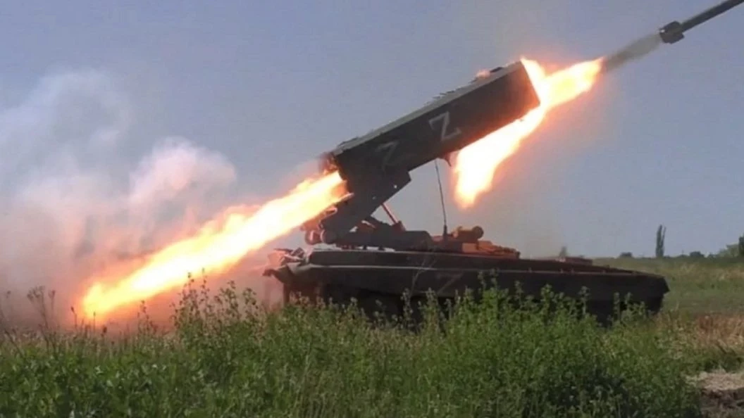 Бойцы группировки "Центр", входящие в расчет тяжелой огнеметной системы ТОС-1А "Солнцепек", залпами термобарических снарядов полностью выжгли систему полевых укреплений ВСУ на красноармейском направлении спецоперации.