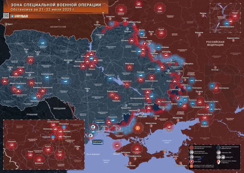 Новая карта боевых действий в зоне СВО на Украине на 23.07.2025
