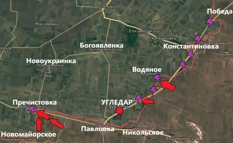 На Угледарском направлении в Константиновке ВС РФ закрепляются на занятых после завершения зачистки рубежах. Дальнейшее продвижение здесь позволит несколько облегчить наступление в районе Водяного и Победы, где у последней уже несколько месяцев ВС РФ ведут тяжелые бои.