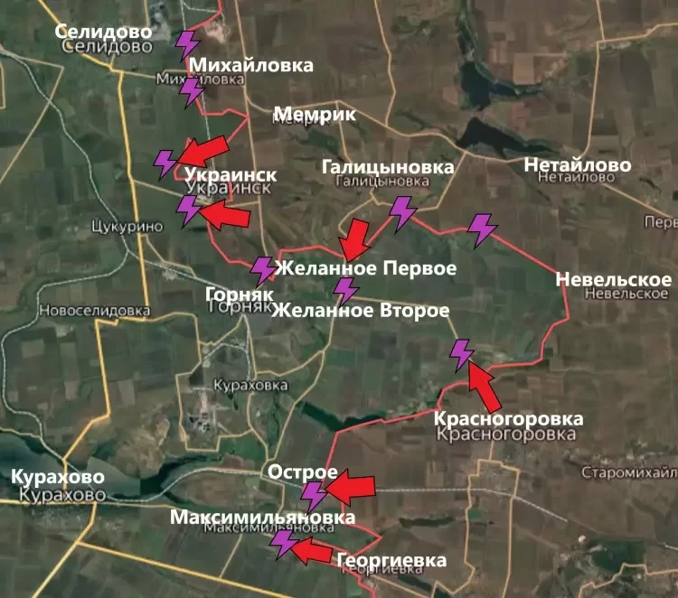 Продвижение ВС РФ зафиксировано на участке между шахтой "Южнодонбасская №1" и Водяным.