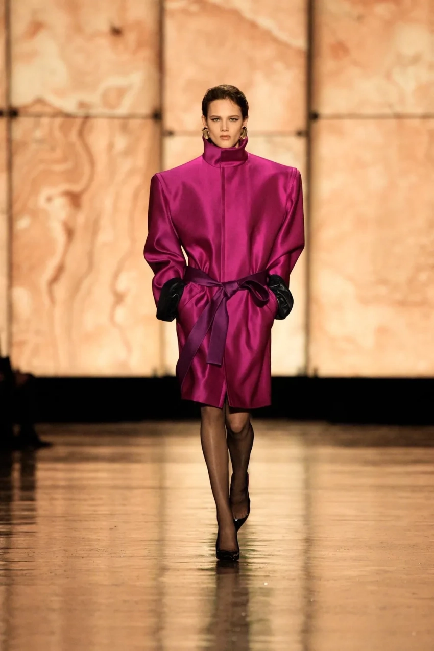 Зои Кравиц/Фото: Pascal Le Segretain/Getty ImagesЗои Кравиц/Фото: Pascal Le Segretain/Getty ImagesХейли Бибер/Фото: Pascal Le Segretain/Getty ImagesХейли Бибер/Фото: Pascal Le Segretain/Getty ImagesРози Хантингтон-Уайтли/Фото: Pascal Le Segretain/Getty ImagesРози Хантингтон-Уайтли/Фото: Pascal Le Segretain/Getty ImagesКейт Мосс/Фото: Pascal Le Segretain/Getty ImagesКейт Мосс/Фото: Pascal Le Segretain/Getty ImagesЛила Мосс/Фото: Pascal Le Segretain/Getty ImagesКарла Бруни/Фото: Pascal Le Segretain/Getty ImagesКарла Бруни/Фото: Pascal Le Segretain/Getty ImagesХлоя Севиньи/Фото: Pascal Le Segretain/Getty ImagesЛинда Евангелиста/Фото: Pascal Le Segretain/Getty ImagesЛинда Евангелиста/Фото: Pascal Le Segretain/Getty ImagesМатильда Пино/Фото: Pascal Le Segretain/Getty ImagesЗои Салдана/Фото: Pascal Le Segretain/Getty ImagesШарлотта Генсбур/Фото: Pascal Le Segretain/Getty ImagesЭльза Хоск/Фото: Pascal Le Segretain/Getty ImagesКатрин Денёв/Фото: Pascal Le Segretain/Getty ImagesCharlie XCX/Фото: Pascal Le Segretain/Getty ImagesАмелия Грей/Фото: Pascal Le Segretain/Getty ImagesАйрис Лоу/Фото: Pascal Le Segretain/Getty ImagesВ новом сезоне креативный директор Saint Laurent Энтони Ваккарелло ссылался на кутюрные коллекции Ива Сен-Лорана 1990-х годов. Модели дефилировали в пальто, платьях и блузах с квадратными плечами, что свойственно эстетике бренда. Акцентами образов стали пояса на бёдрах, завязанные в виде бантов, массивные серьги, платья из лаковой кожи с леопардовым и цветочным принтами, комплекты из кружева, пышные юбки в пол в сочетании с кожаными куртками.