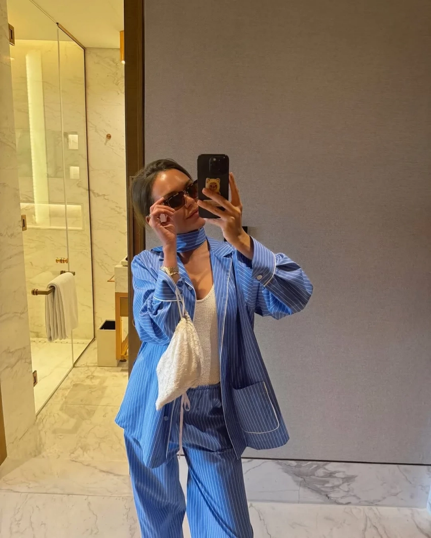 "La dolce vita! И немножко бомболони", — подписала снимки Стеша. В поездке она выгуляла голубой пижамный костюм в полоску, платье с цветочными принтом, которое дополнила сумкой Hermes и балетками Alaia, а также коричневый купальник.