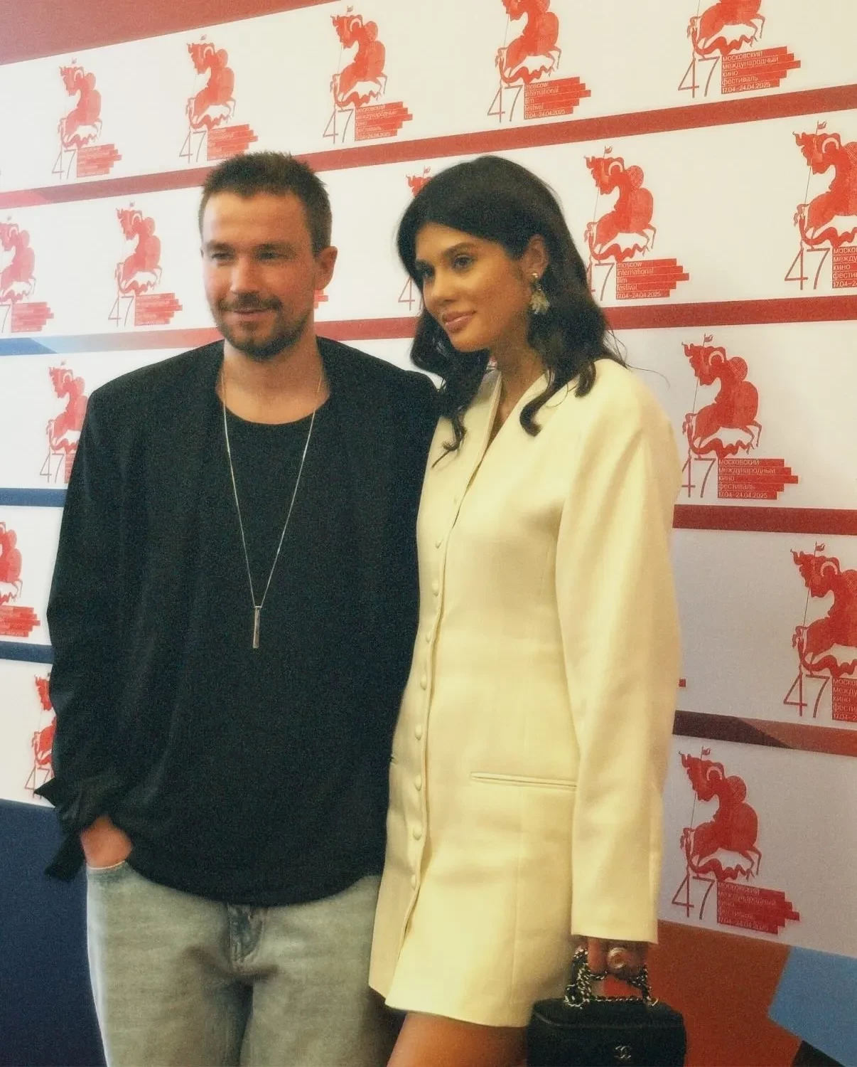 "Родители на выгуле", — написала в соцсетях Виктория, которая на днях показала фигуру после родов. На снимках пара позирует вместе перед выходом и на дорожке фестиваля.