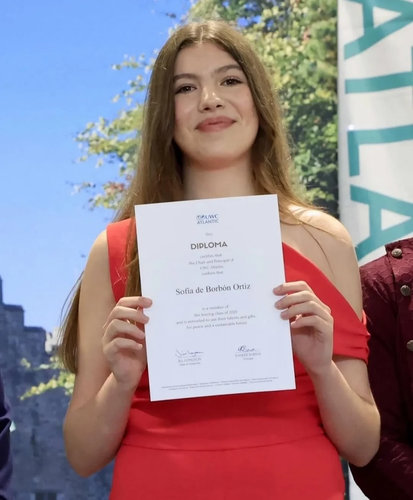 18-летняя инфанта София, младшая дочь короля Испании Филиппа VI и королевы Летиции, окончила колледж UWC Atlantic в Уэльсе: несколько лет она изучала там различные языки, включая классический кастильский, каталанский, галисийский, баскский, английский и китайский.
