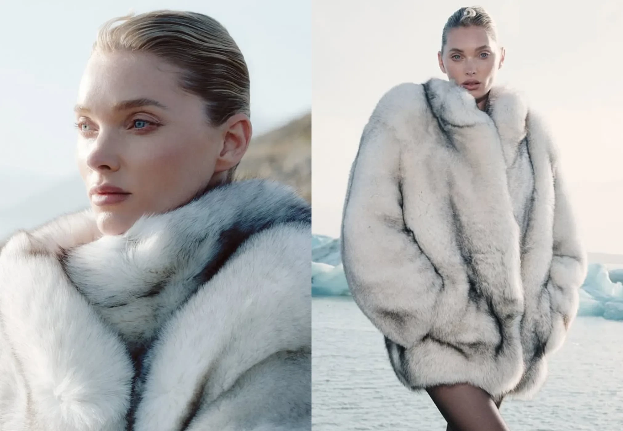 36-летняя шведская топ-модель примерила несколько образов Ekonika. Эльза позировала на фоне местной природы в короткой шубе и сапогах (в стиле slavic bimbo), кожаной куртке и плаще, а также в лоферах с мехом и куртке молочного цвета.