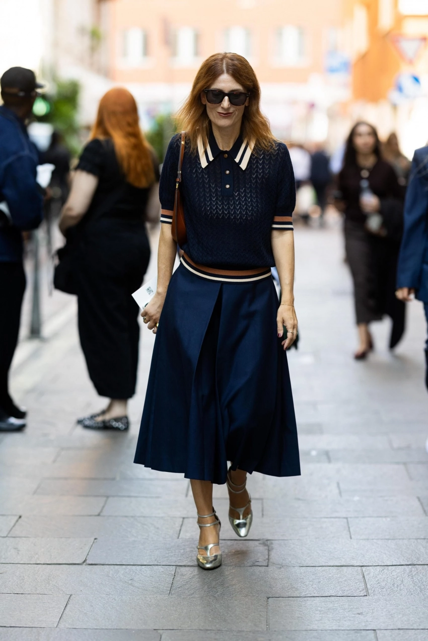 Ретро-отголоски элитных колледжей снова в моде. Поло в полоску, словно из гардероба молодого принца, теперь легко интегрируются в деловой стиль. Главное — выбираем оверсайз: свободный крой делает образ одновременно скромным и неожиданно сексуальным. Дополните его строгими брюками и пиджаком — и вы получите идеальный микс расслабленной роскоши и офисной сдержанности.