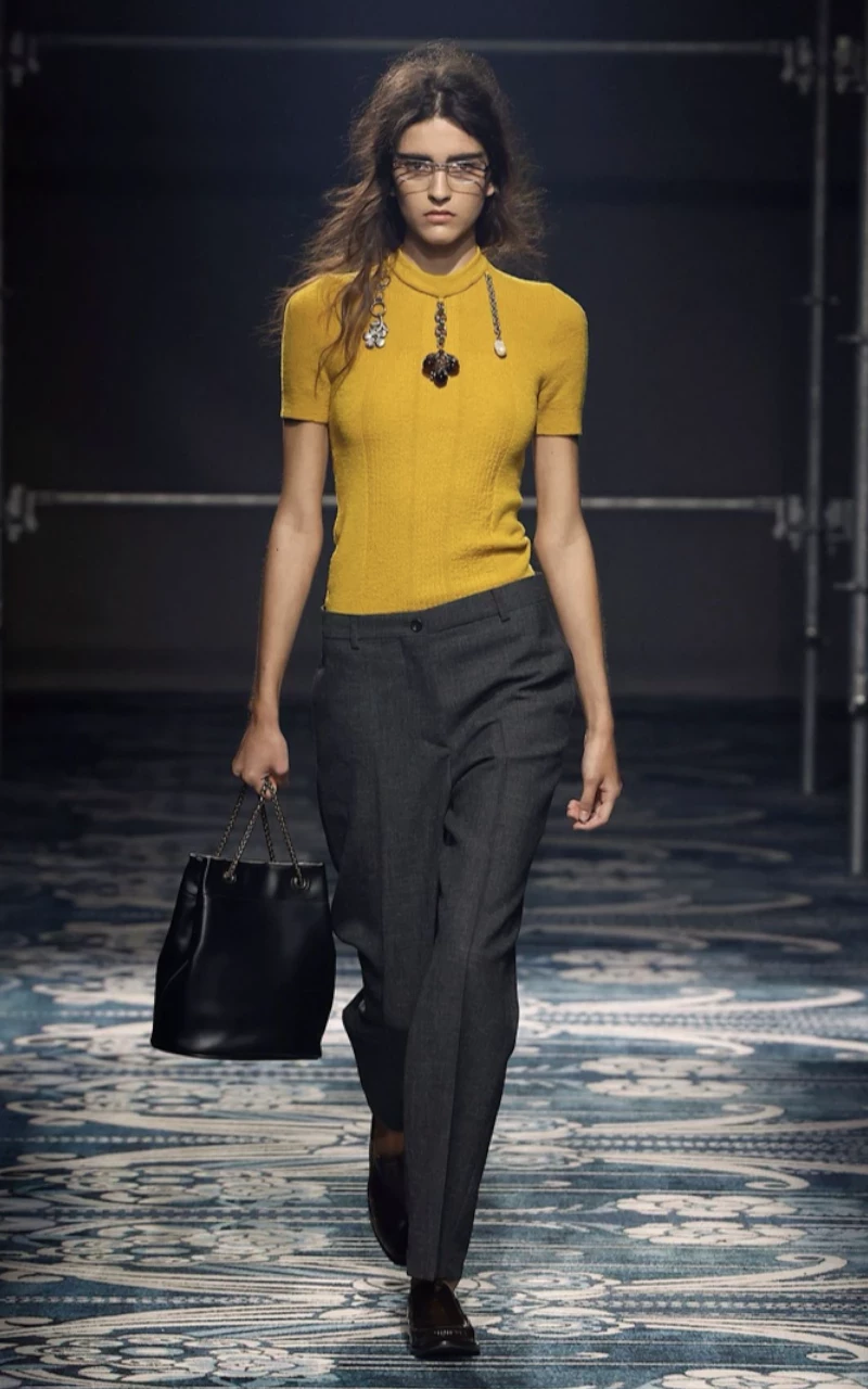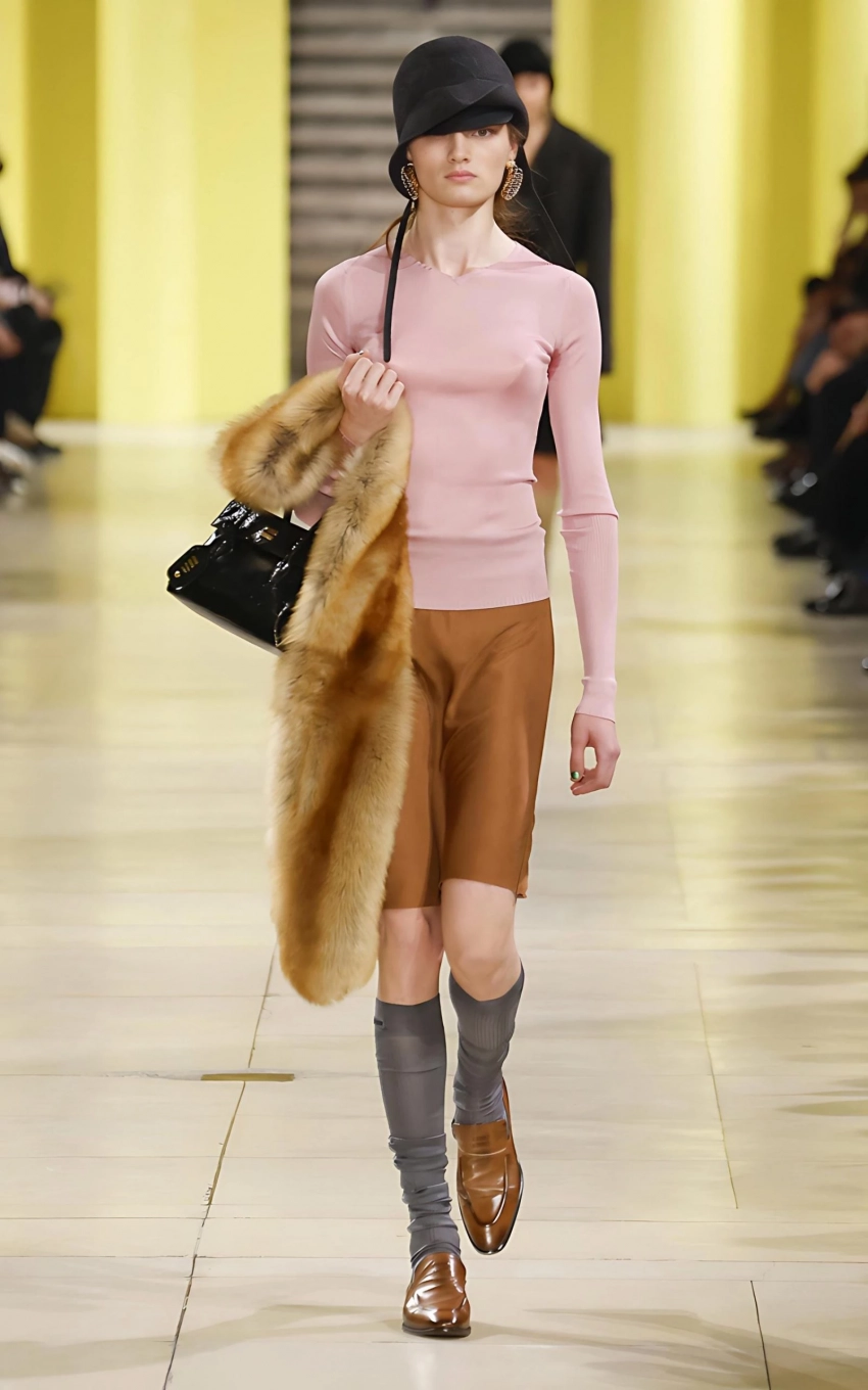 Оттенки. Базовая палитра остаётся на пике: чёрный и коричневый (см. показы Max Mara, Prada, Miu Miu). Но для ярких акцентов дизайнеры предлагают металлизированные варианты — такие модели показали Ferragamo и Givenchy.
